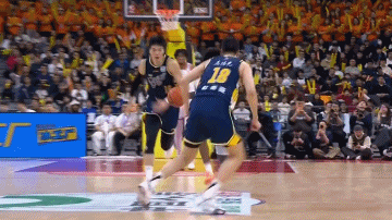 次节3分钟左右,古德温一对一背打张皓嘉,在出手的一瞬间古德温与张皓嘉发生肢体接触后倒地,理论上这是一个A点到B点的投篮犯规,但是裁判没有做出吹罚。